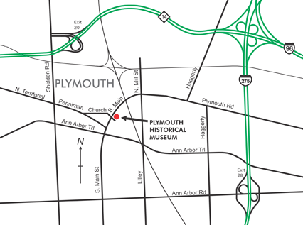 Click on map for larger version.The Archive is housed at the Plymouth Historical Museum, at 155 West Main Street, in Plymouth, Michigan.