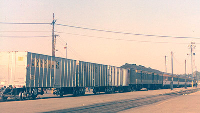 Three C&O RoadRailers bring up the rear of an eastbound passenger train about to depart Wyoming Yard, circa 1960.