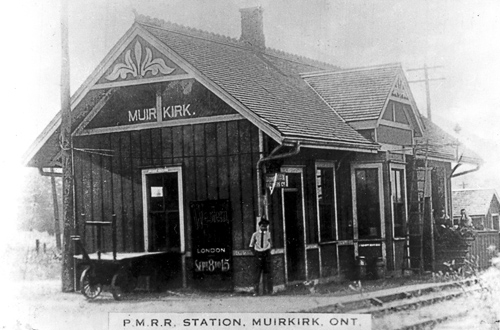 Muirkirk is a rural village between Ridgetown and Rodney, Ontario, along the route of the PM's line from Windsor to St. Thomas. The track through Muirkirk was abandoned in 1989, and removed during the 1990s.