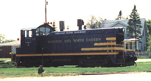 The engineer's side of Ex-Manistee & North Eastern NW2 #3, the last remaining M&NE locomotive, at Suttons Bay, Michigan in August, 1992. At this time she was running for the Leelanau Scenic Railroad, which operated trains between Greilicksville and Suttons Bay on the Leelanau Peninsula, northwest of Traverse City.