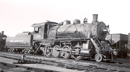 The PM's Class C-2 2-8-0s were some of the lighter and more "classic" looking 2-8-0s on the roster. The low tender, similar to those delivered with some of the PM's 4-6-2s, makes it look much taller than it is.Number 299 is shown here somewhere in eastern Michigan in 1937.