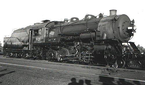The PM's SC class Consolidations were the last 2-8-0s delivered and their heaviest. Alco delivered 25 of these 185 ton locomotives in 1911. They stayed on the roster until 1952Number 921 is shown at St. Thomas, Ontario in August, 1939.