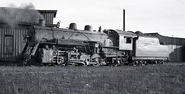 PM Class MK-1 2-8-2 #1003 at Muskegon, Michigan in the mid-1930s. The PM's first Mikados were a group of ten Class MK-1 locomotives built in 1913. Numbered 1001-1010, they were smaller than the later USRA-design Light Mikado. They were retired and scrapped between 1946 and mid-1948.