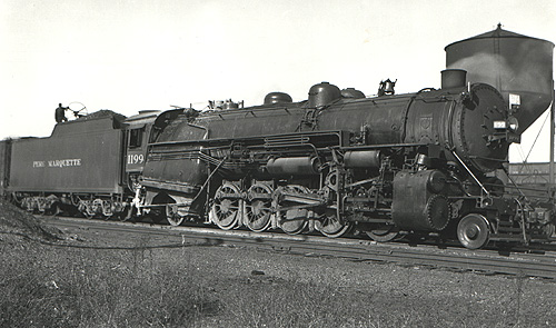 In 1930, the PM gained two new locomotives which would be the largest on the railroad until the arrival of its first Berkshires in 1937. The locomotives, class SF-6 2-10-2s, were purchased used from the Hocking Valley Railroad, which itself had gotten them from the Lehigh Valley in 1920 and 1922.Aside from being considerably larger than the PM's class SF 2-10-2s, these two locomotives were distinctive in having large Wootten fireboxes (designed to use slow-burning anthracite coal) and side-by-side sand domes.