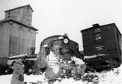 The snowplow wreck at MacGregor, Michigan.BL2 #1846 sustained far less serious damage in this wreck in Michigan's thumb than sister #1844 did in the infamous February, 1959 wreck at Hamilton, Michigan.
