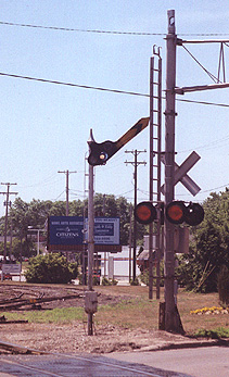 Semaphores were once common along the Pere Marquette. By the 1990s, nearly all of them had been removed, most replaced with target signals. In 2001, however, you could still find a semaphore in service along the former PM trackage in Manistee.Photo by Nathan Nietering of the former Chessie Chapter web site.