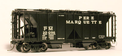 In 2009, Intermountain Railway Company released a series of six highly-detailed HO scale 2-bay covered hoppers painted and lettered for the PM.