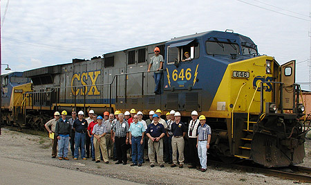 On August 9, 2003, members of the PMHS took part in a tour of Wyoming Yard as part of the 2003 PMHS Annual Members' Get-Together.This group photo was taken near the site of the old power house.