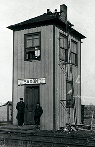 Saxon Tower guarded the crossing of the PM's Petoskey line and the Grand Trunk Western's former Toledo, Saginaw & Muskegon line on the northern edge of Sparta until the GTW line was abandoned in 1946. Originally connecting Ashley and Muskegon, the GTW line was cut back and the track removed until only the portion from Ashley to Greenville and a spur going east a few miles out of Muskegon remained.