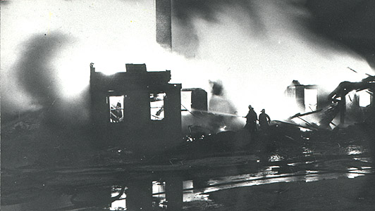 Until 1946, the YMCA operated a hotel at the PM's Wyoming Yard. On Christmas Eve that year, a fire believed to have been caused by a carelessly discarded cigarette burned the building to the ground. This photo was shot by the Grand Rapids Herald's photographer on the scene, who also happens to be the webmaster's father.